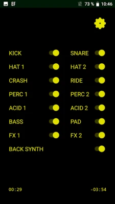 - Also it has "mute" feature - tap on gear icon and you can disable chosen instruments and use app as a synth generator, for example.