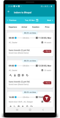 Hans Travels act as an integrator of travel industry in India by providing one- stop/end-to-end solutions for your every travel & comfort need. It is one of the pioneer players along Indore route who have served more than million passengers since inception. Regulated and sophisticated services, end-to-end route connectivity along with thrust for innovation in customer/passenger comfort and cost has paved way for becoming "Numero Uno" across passenger community.