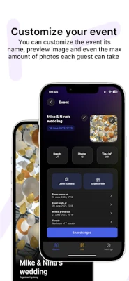 Lense allows your guests to capture all the valuable moments, from romantic wedding vows to festive dance moves and breathtaking vacation views. You can determine how many photos each guest may take, just like a disposable camera!
