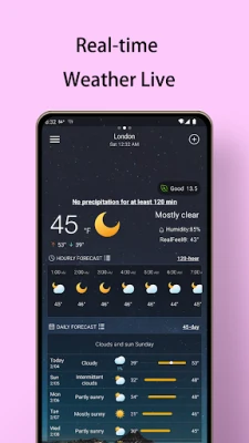 This free weather app offers all the features: weather forecast for current location, manually added city weather forecast, weather forecast for up to 120 hours, weather forecast for up to 45 days, advanced rainfall forecast accurate to the minute, multiple types of weather radar, timely weather alerts, various styles of weather widgets, custom notification bar, beautiful themes, colorful weather background.
