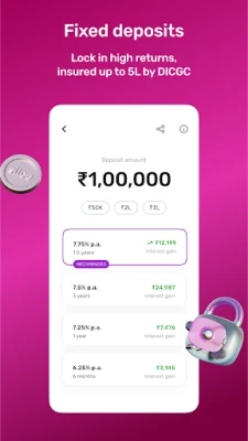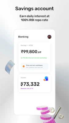 Banking that works for you. Open a zero-balance digital savings account, earn daily interest at 100% of the RBI repo rate, get FD rates up to 7.75%, and access instant personal loans up to ₹5 lakhs in a few taps. Plus, enjoy fast UPI payments, automated bill payments, and real-time spend tracking with complete security.
