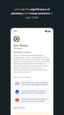 - Natal Chart and In-Depth Analysis: Explore detailed analyses of love, career, health, and more through your birth chart. Discover the positions of signs, houses, planets, and asteroids.