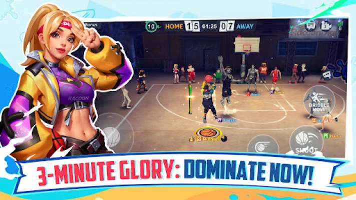 Your characters have various professional skills such as box out, flick, follow-up shot, hook shot, fadeaway 3-pointer, bounce pass, pick-and-roll, etc. Each player has their own unique and exclusive skills. Use them wisely to lead your team to victory, and be the focus of attention on the court!